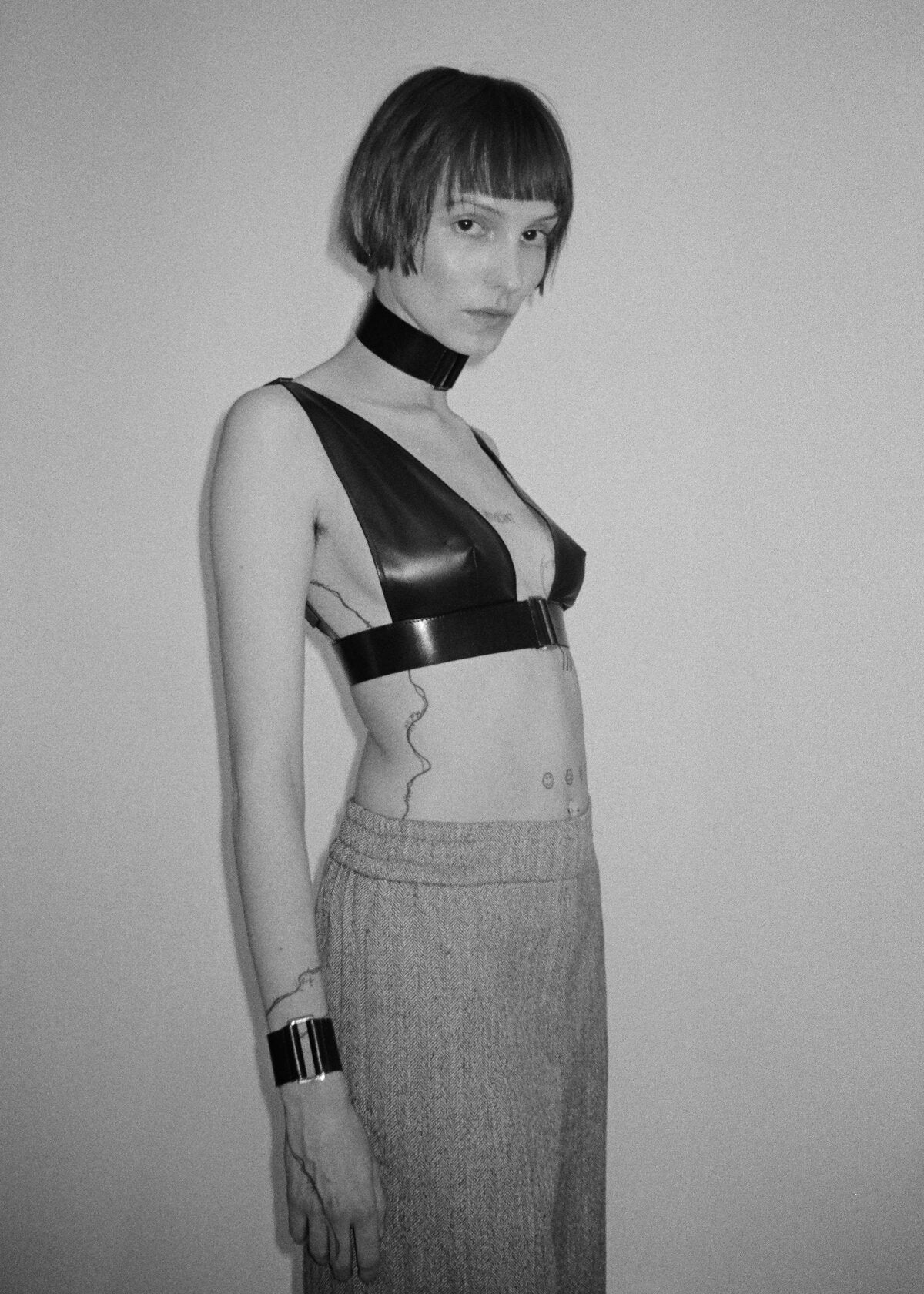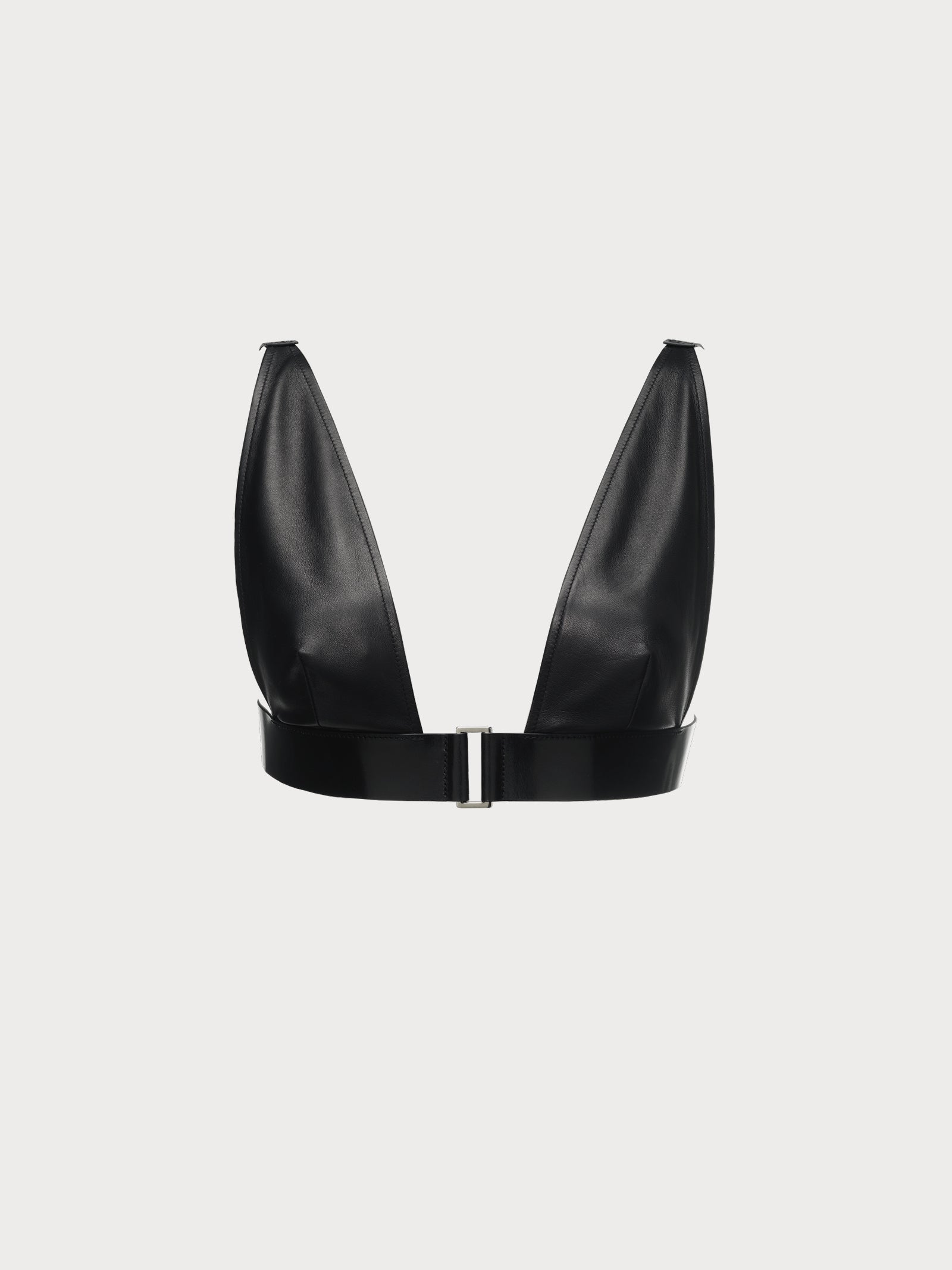 Embrace sophistication with the Eileen Leather Bra – an elegant masterpiece with soft cups, subtle leather shine, and exquisite hardware detail.